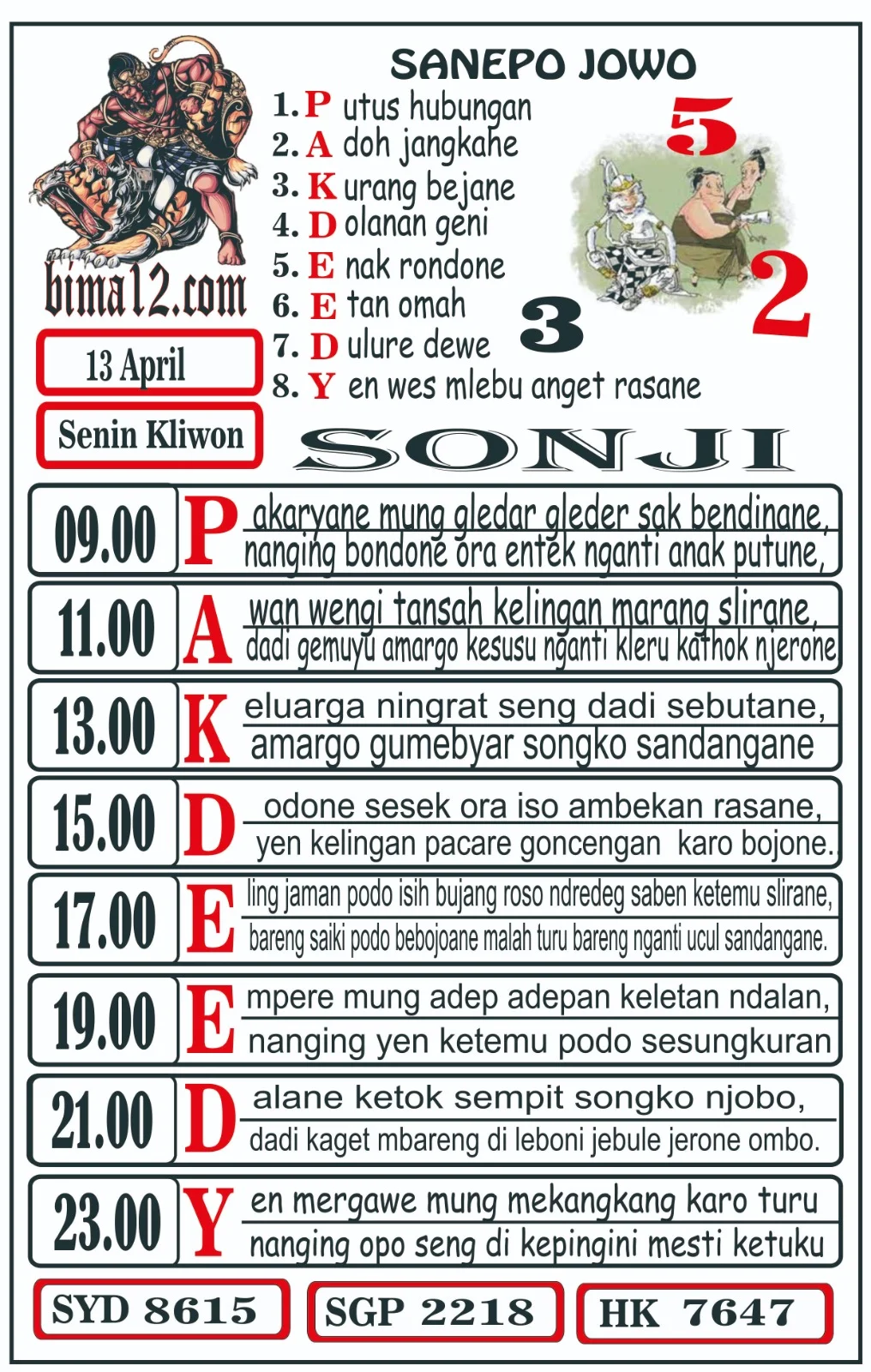 | SENIN (KLIWON) 13 APRIL |