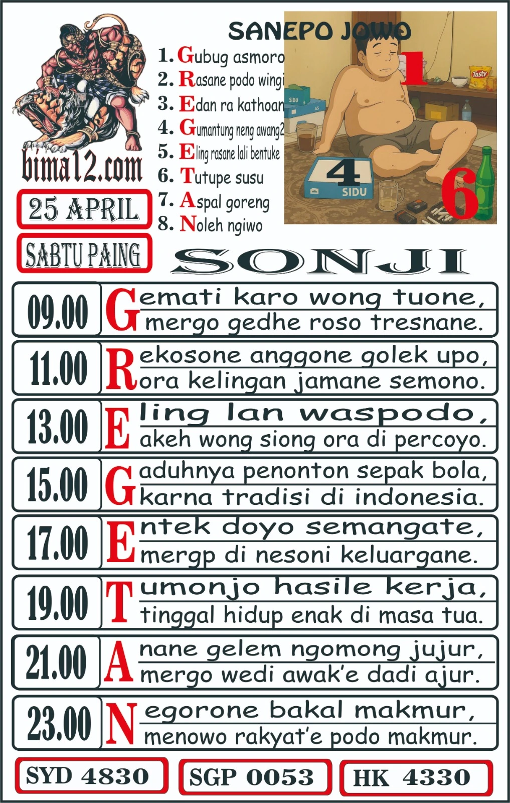 | MINGGU (WAGE) 25 JANUARI |